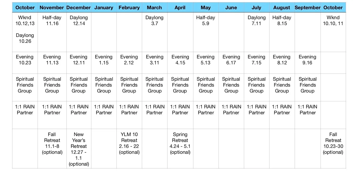 Do we do RAIN Partners and Body-Centered Inquiry throughout the whole year?